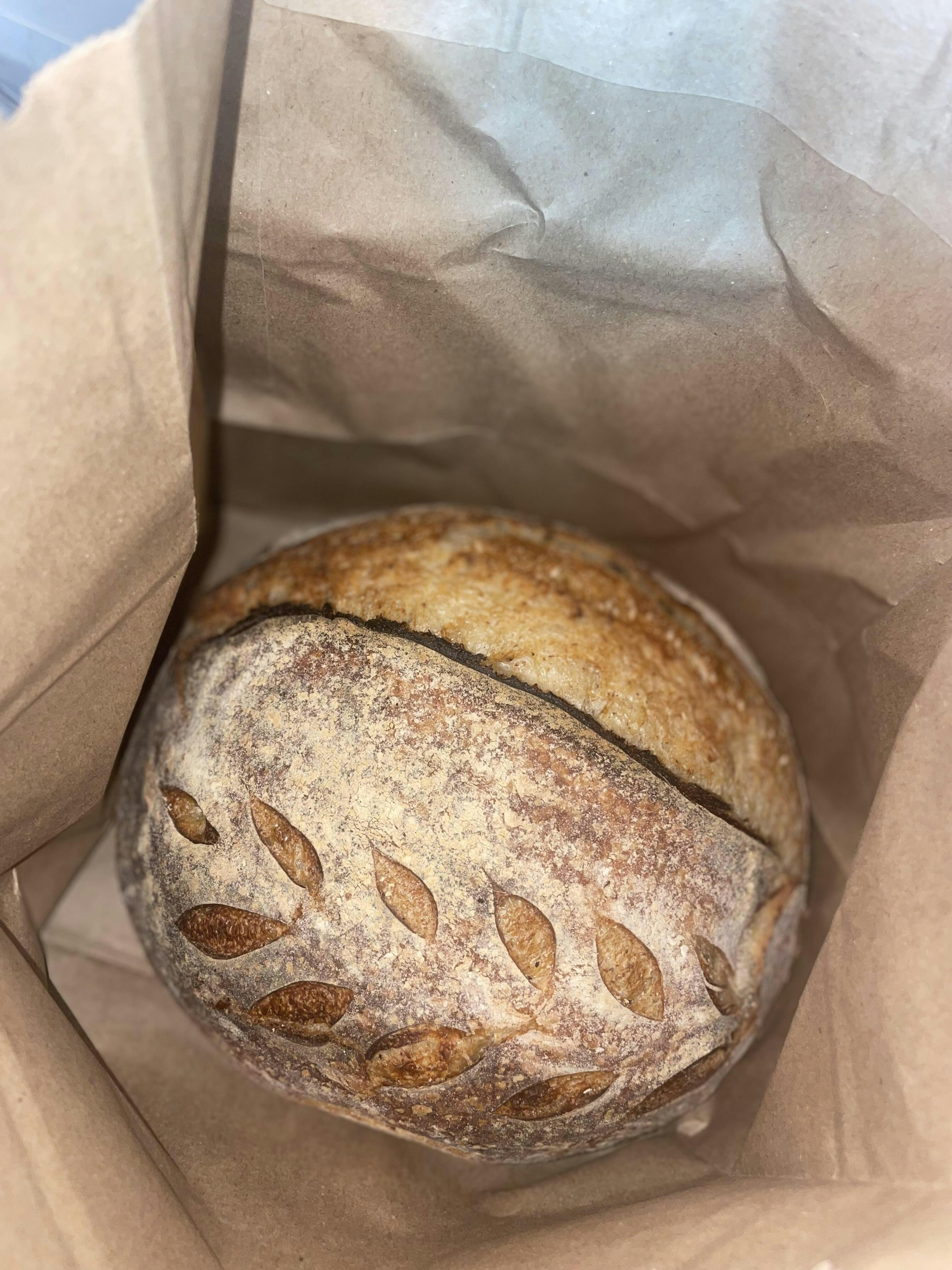 Dusted with Organic Rice Flour to avoid introducing new gluten after fermentation.